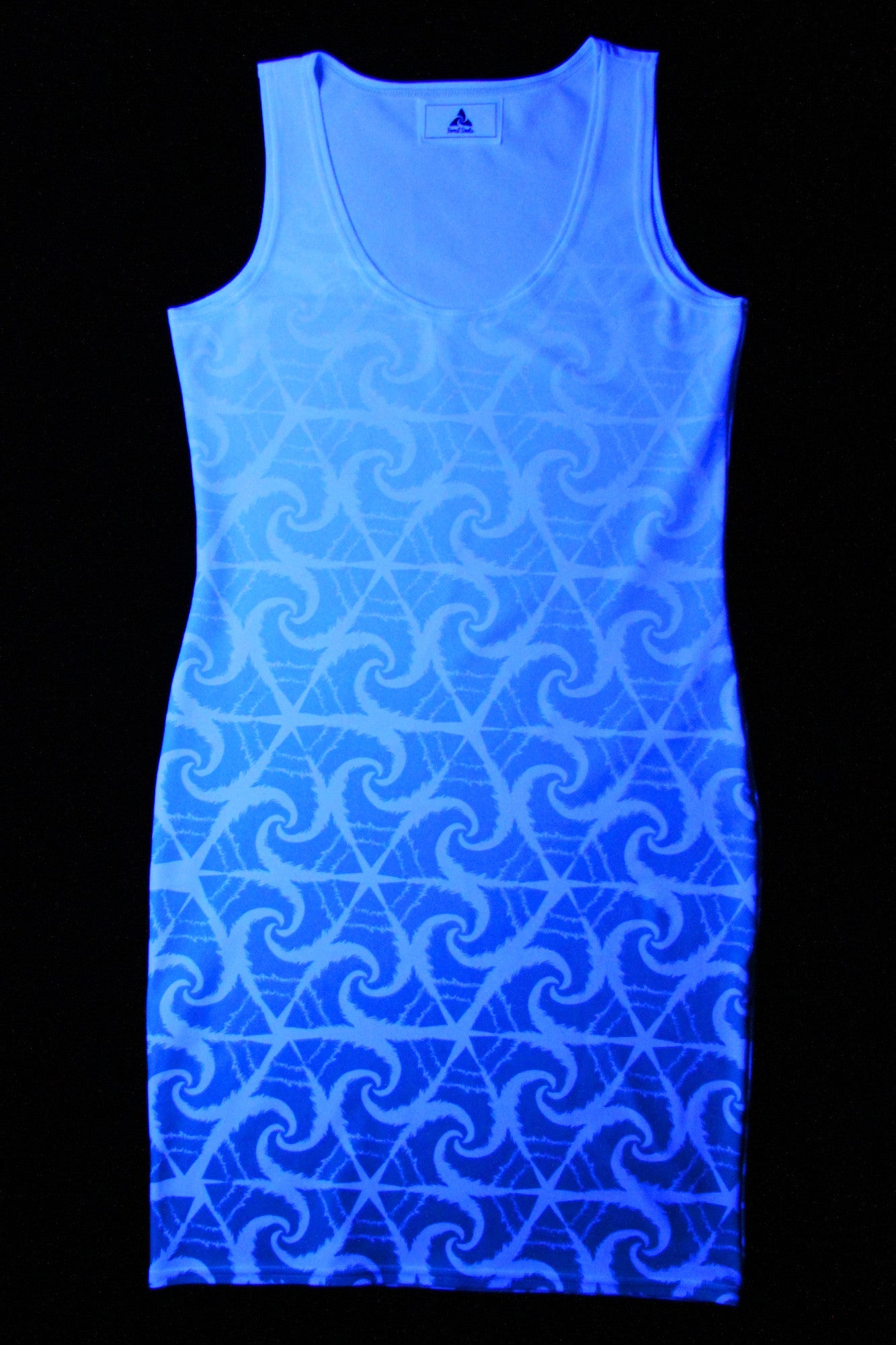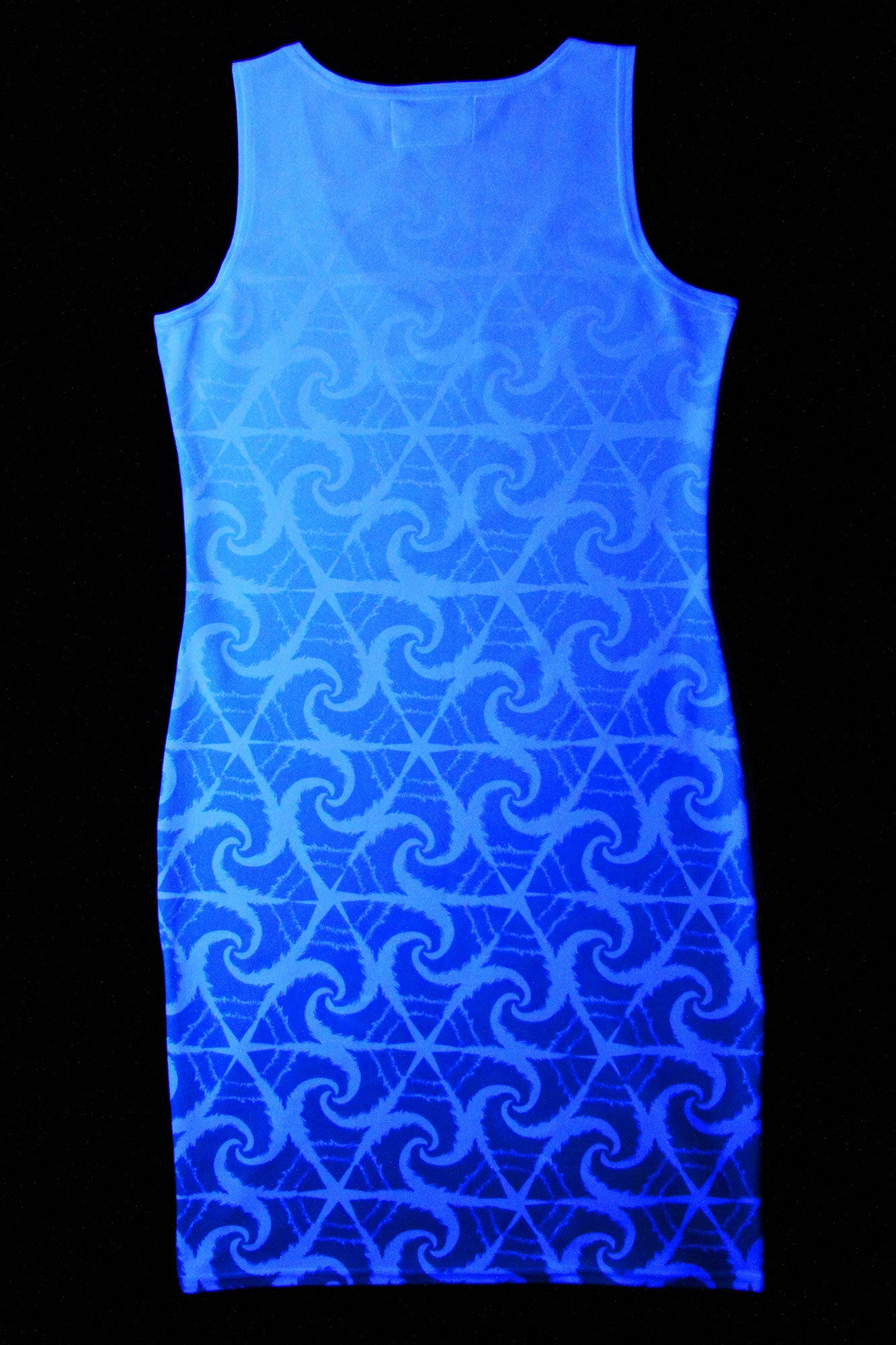 These dresses even glow under a black light! 82% recycled polyester/18% spandex Printed, hand-cut, and sewn in the USA View full product details